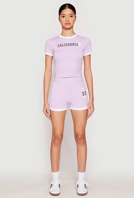 Womens Contrast Trim 23 Graphic Shorts, S
