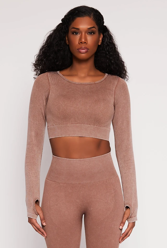 Rib Knit Long Sleeve Crop Top with Scrunchie