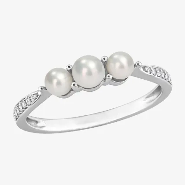 Womens Diamond Accent 4MM White Cultured Freshwater Pearl 14K Gold Cocktail Ring