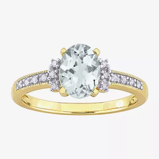 Womens Diamond Accent Genuine Blue Aquamarine 18K Gold Over Silver Oval Cocktail Ring
