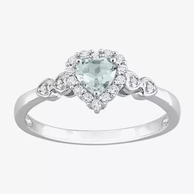 Womens Diamond Accent Genuine Blue Aquamarine Sterling Silver Heart Cocktail Ring