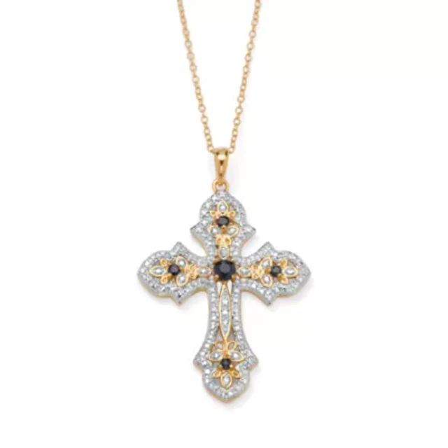 Womens Diamond Accent Genuine Blue Sapphire 18K Gold Over Silver Cross 18 Inch Pendant Necklace