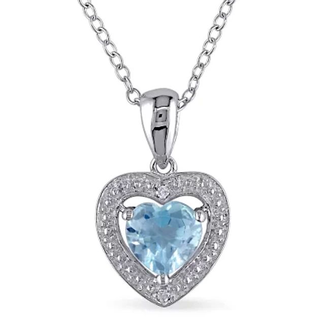 Womens Diamond Accent Genuine Blue Topaz Sterling Silver Heart 18 Inch Pendant Necklace
