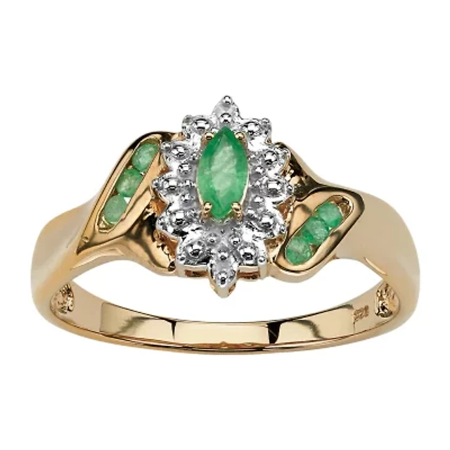 Womens Diamond Accent Genuine Green Emerald 18K Gold Over Silver Cocktail Ring