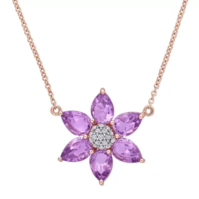 Womens Diamond Accent Genuine Purple Amethyst 10K Rose Gold Flower 17 Inch Pendant Necklace