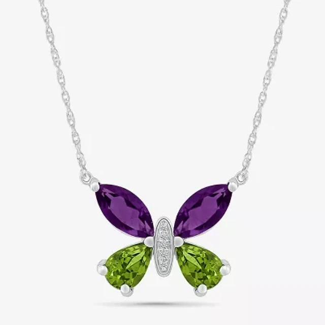 Womens Diamond Accent Genuine Purple Amethyst Sterling Silver Butterfly 18 Inch Pendant Necklace