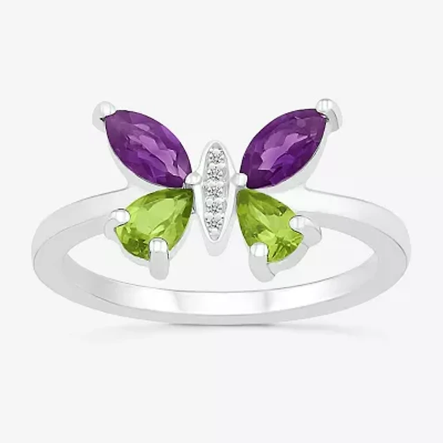 Womens Diamond Accent Genuine Purple Amethyst Sterling Silver Butterfly Cocktail Ring