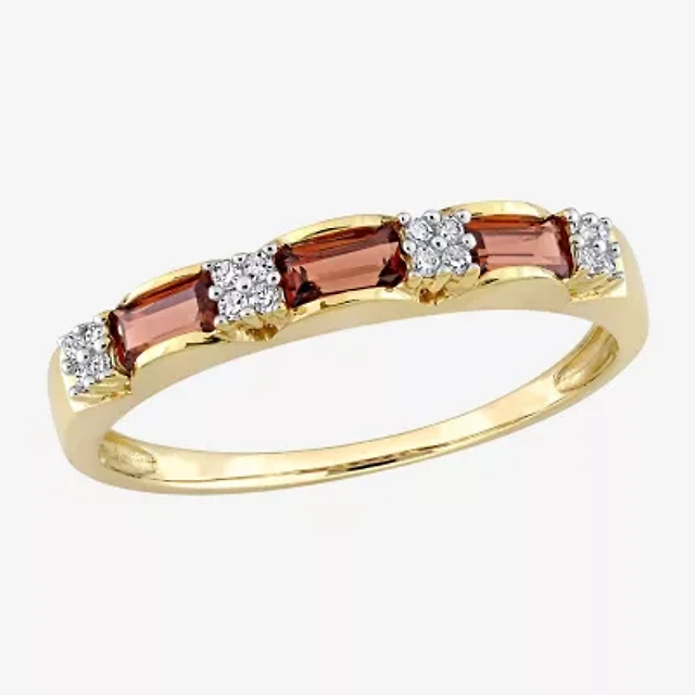 Womens Diamond Accent Genuine Red Garnet 10K Gold Stackable Ring