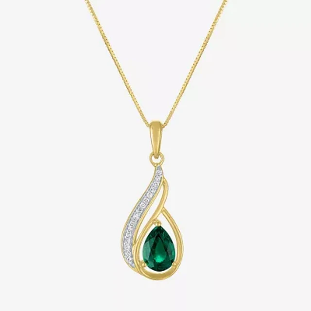 Womens Diamond Accent Lab Created Green Emerald 10K Gold Pear 18 Inch Pendant Necklace