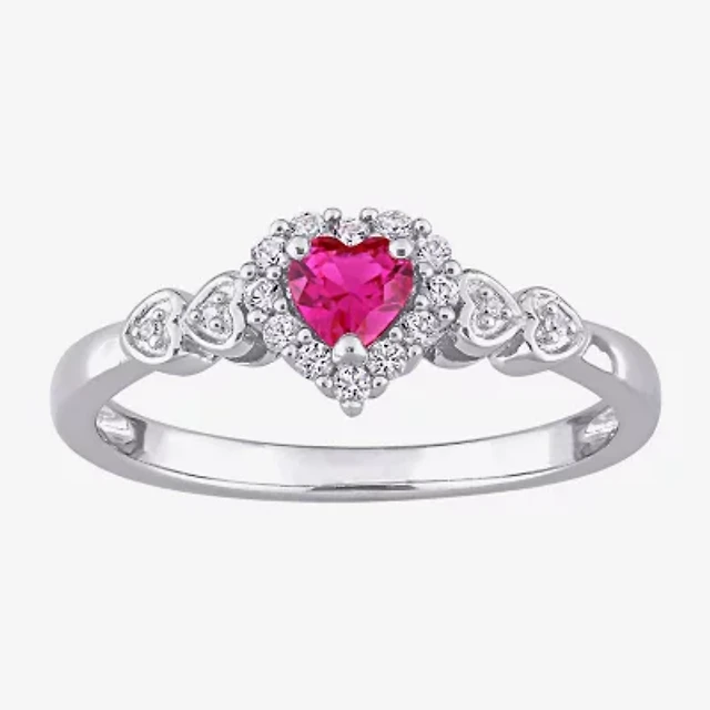 Womens Diamond Accent Lab Created Red Ruby Sterling Silver Heart Cocktail Ring