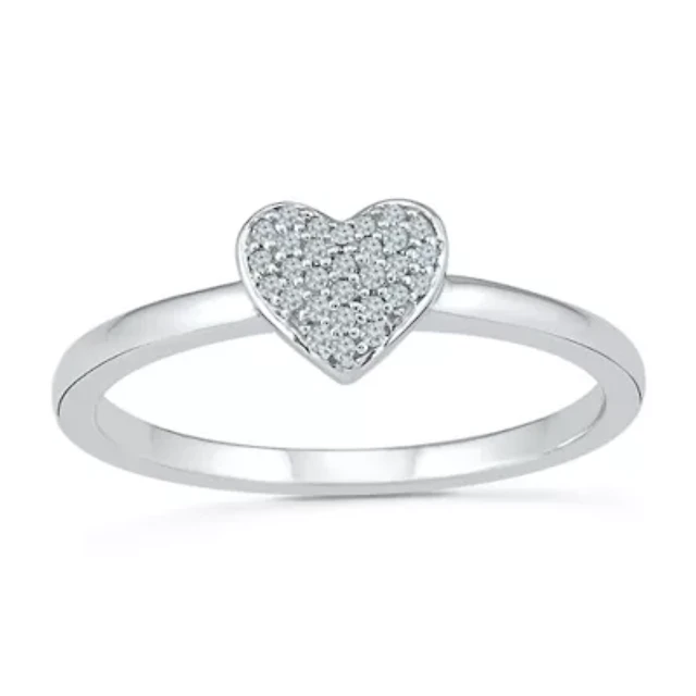 Womens 1/10 CT. T.W. Natural White Diamond Sterling Silver Heart Cocktail Ring