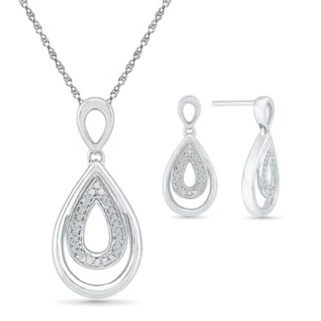 Womens 1/10 CT. T.W. Natural White Diamond Sterling Silver Pear 2-pc. Jewelry Set