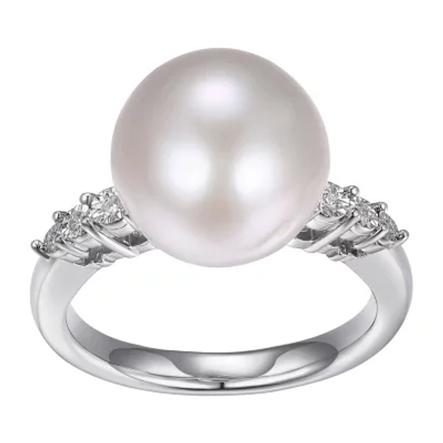 Womens Diamond Accent White Cultured Freshwater Pearl Sterling Silver Cocktail Ring