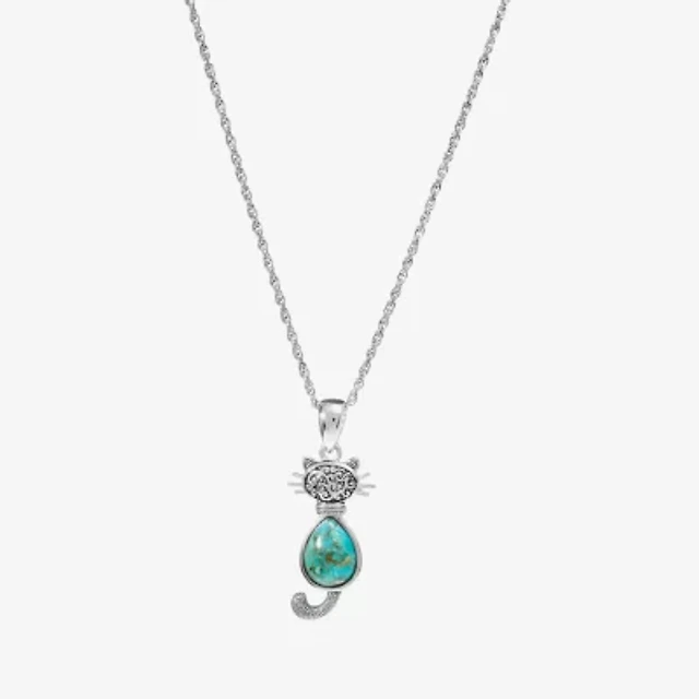 Turtle Womens Enhanced Blue Turquoise Sterling Silver 18 Inch Pendant Necklace