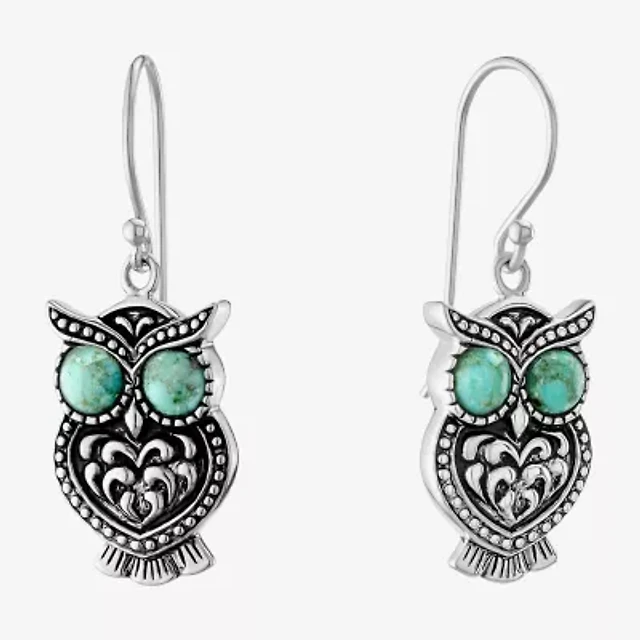Silver Treasures Enhanced Womens Blue Turquoise Sterling Silver Drop Earrings