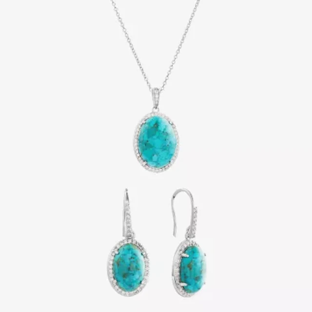 Womens Enhanced Blue Turquoise Sterling Silver Oval 2-pc. Jewelry Set