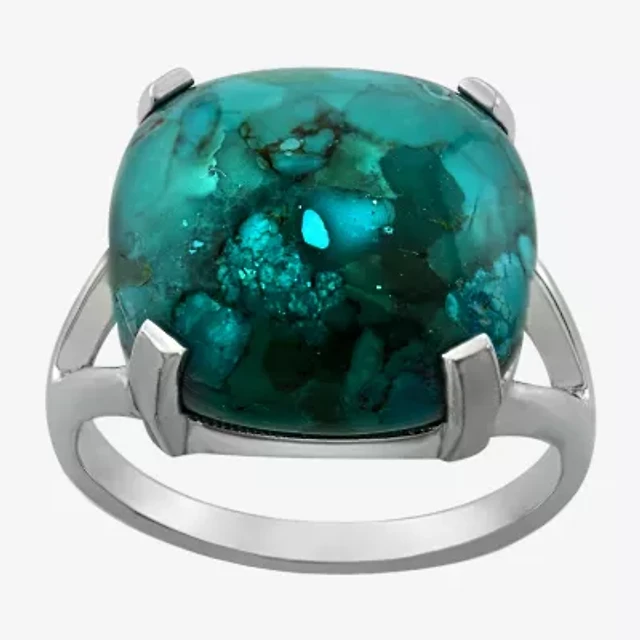 Womens Enhanced Blue Turquoise Sterling Silver Cocktail Ring