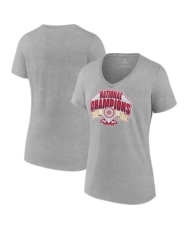 Women's Fanatics Gray Oklahoma Sooners 2023 Ncaa Softball College World Series Champions Official Logo V-Neck T-shirt