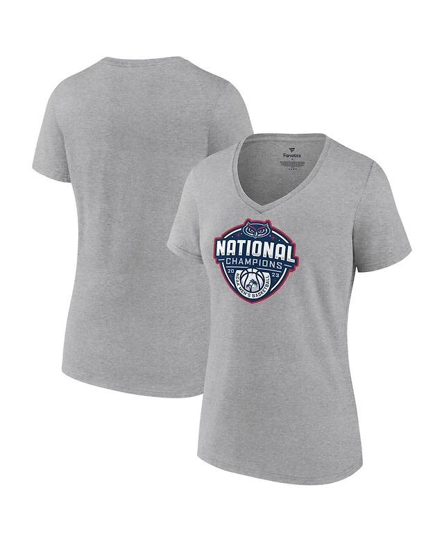 Fanatics Women's Heather Gray UConn Huskies 2024 Ncaa Men's Basketball National Champions Specific V-Neck T-Shirt
