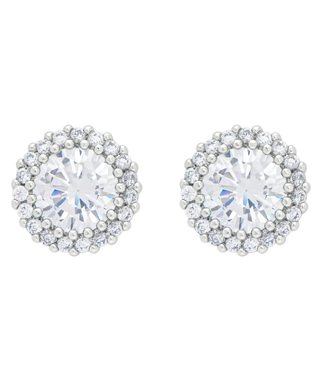Cubic Zirconia Halo Stud Earrings in Silver-Plate