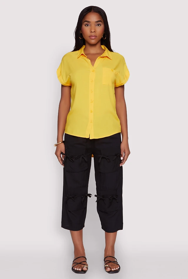 Womens Fixed Cuff Short Sleeve Shirt, Yellow, Size S