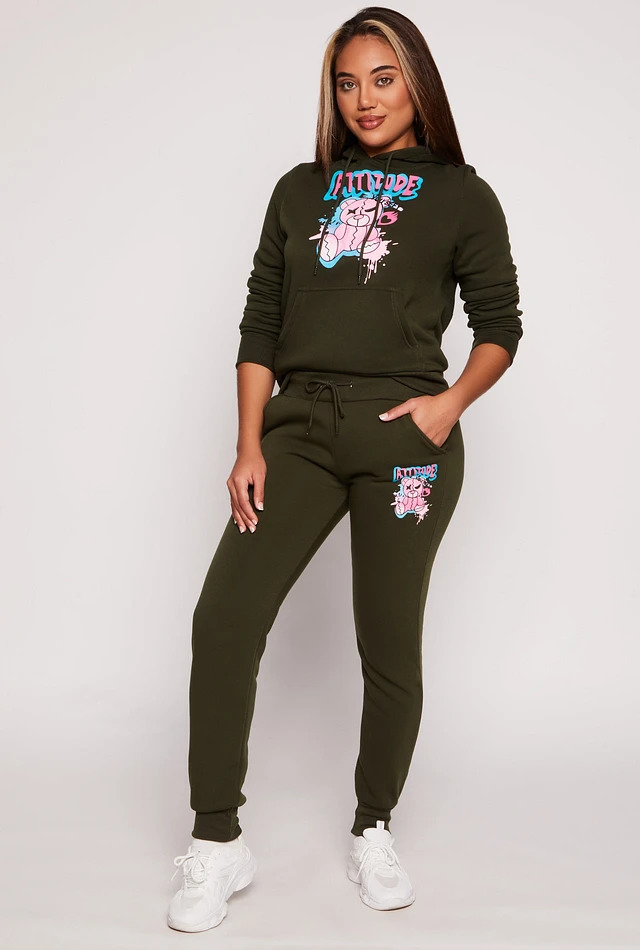 Womens Fleece Lined Attitude Graphic Sweatpants, Green, Size M