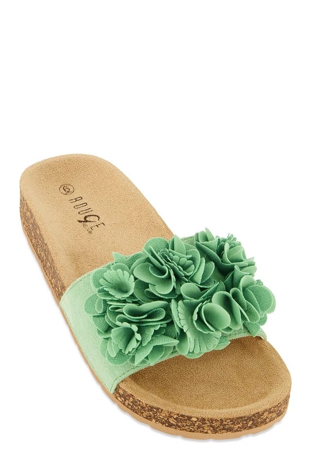 Womens Flower Petal Band Platform Slide Sandals, 6.5