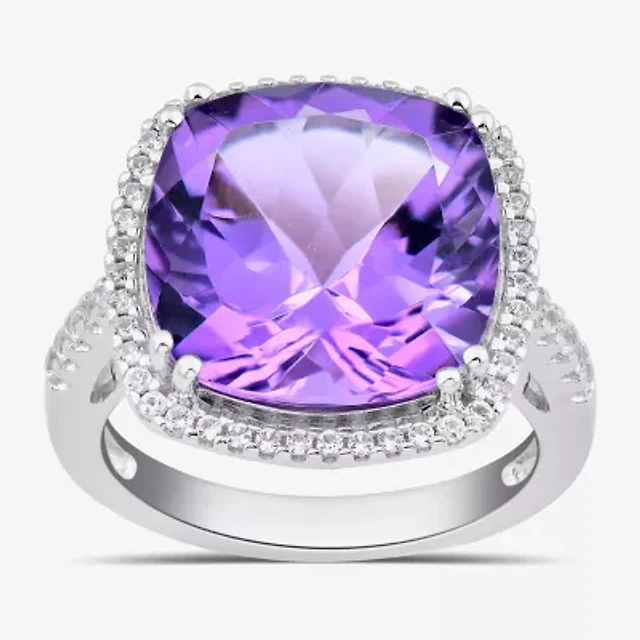 Womens Lab Created Gemstone Sterling Silver Side Stone Solitaire Cushion Cocktail Ring