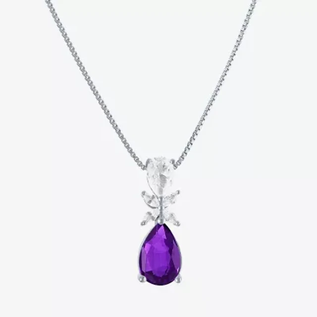 Womens Gemstone Sterling Silver Pear Pendant Necklace
