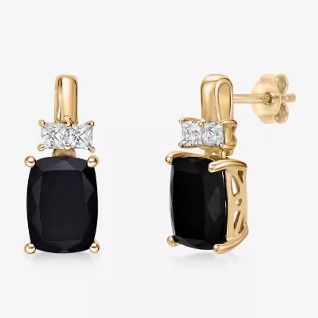 Womens Genuine Black Onyx 10K Gold Cushion Drop Earrings