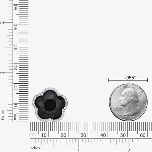 Womens Genuine Black Onyx Sterling Silver Flower Pendant Necklace