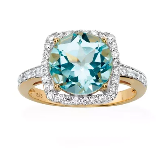 Womens Genuine Blue Topaz 14K Gold Over Silver Cocktail Ring