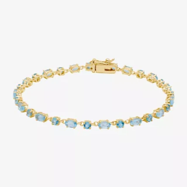 Womens Genuine Blue Topaz 14K Gold Over Silver Sterling Silver 7.25 Inch Tennis Bracelet