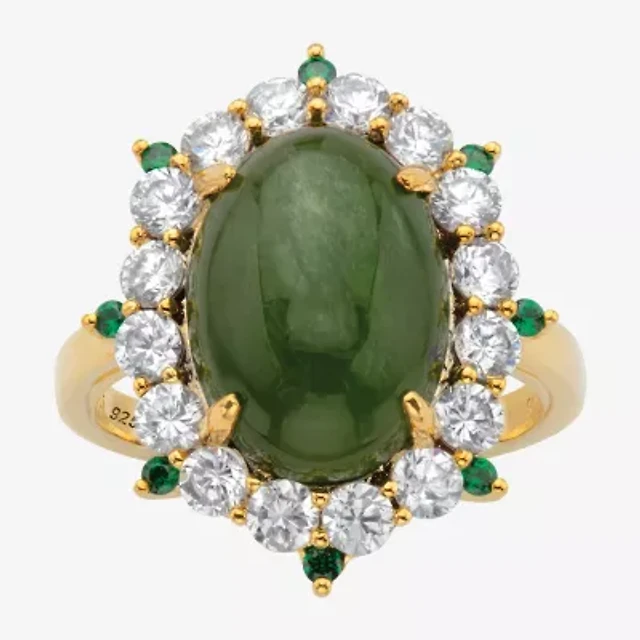 Womens Genuine Green Jade 18K Gold Over Silver Cocktail Ring