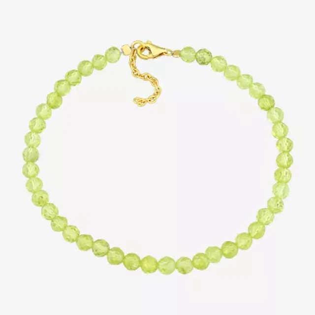 Womens Genuine Green Peridot 18K Gold Over Silver Beaded Bracelet