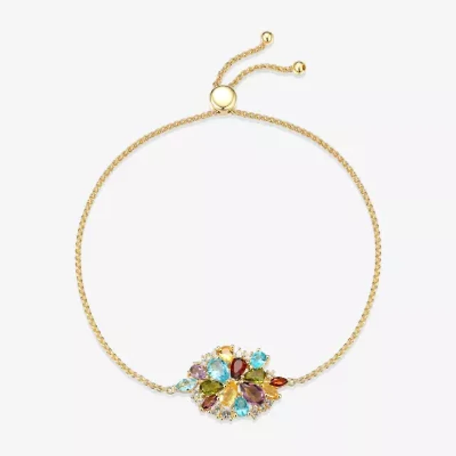 Womens Genuine Multi Color 18K Gold Over Silver Bolo Bracelet