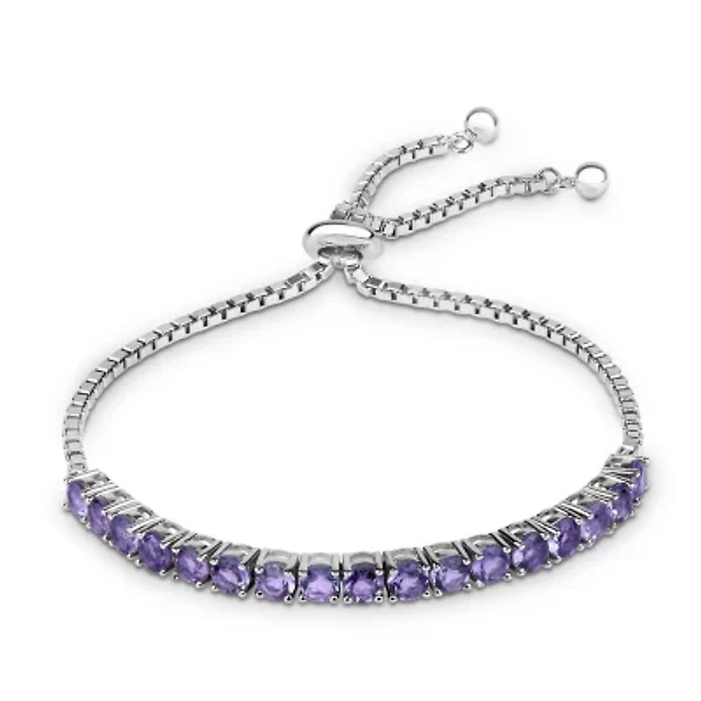 Womens Genuine Purple Amethyst Sterling Silver Bolo Bracelet