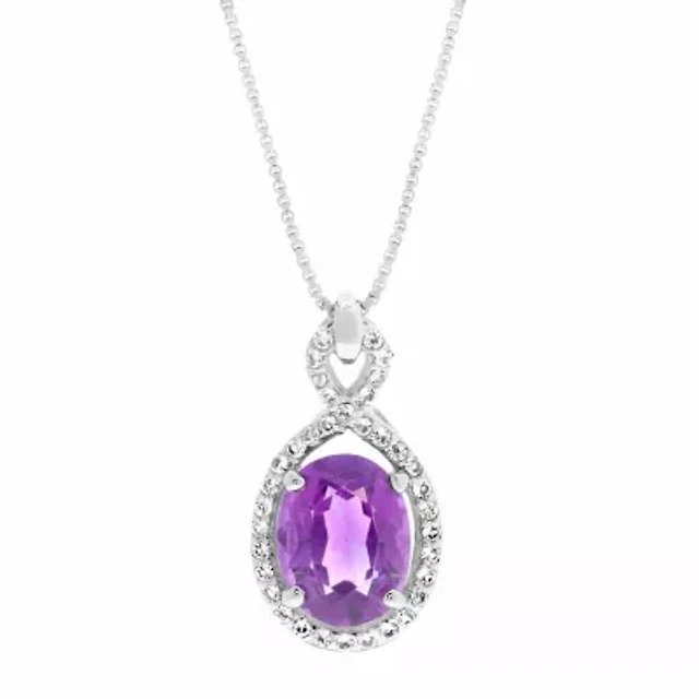 Womens Genuine Purple Topaz Sterling Silver Oval 18 Inch Pendant Necklace