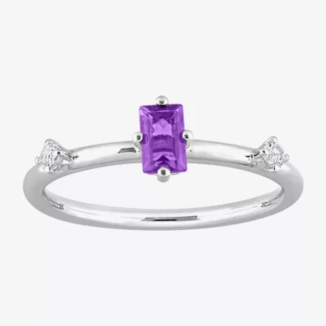 Womens Genuine Purple Amethyst Sterling Silver Stackable Ring