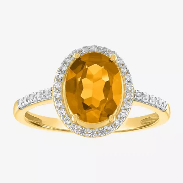 Womens Diamond Accent Genuine Yellow Citrine 14K Gold Over Silver Cocktail Ring