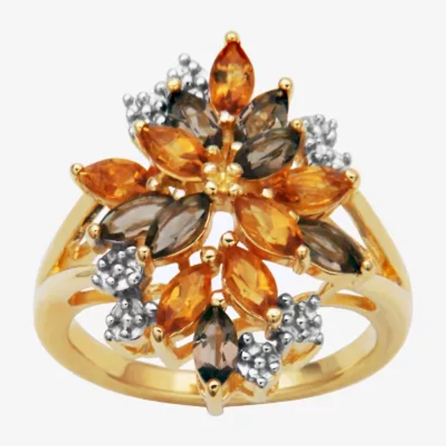 Womens Genuine Yellow Citrine 18K Gold Over Silver Flower Cluster Cocktail Ring