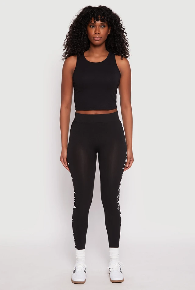 Womens Good Vibes Graphic High Waist Leggings, Black, Size L-XL