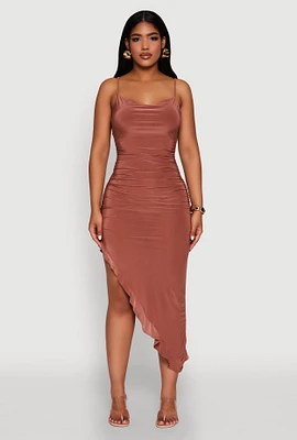 Womens Haute Monde Cowl Neck Asymmetrical Dress, Brown, Size S