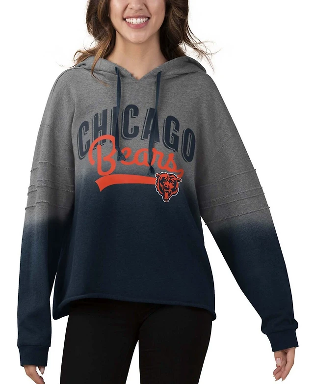 Women's Heather Gray, Navy Chicago Bears Superstar Dip-Dye Crop Pullover Hoodie