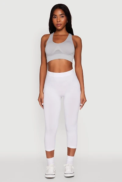 Womens Seamless High Waisted Capri Leggings, White, Size L-XL