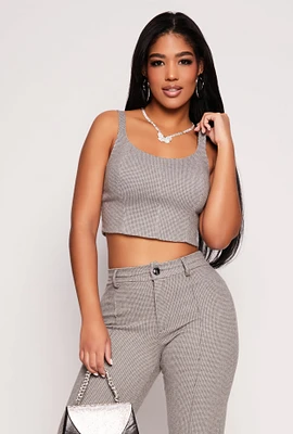 Womens Iris Houndstooth Crop Top, Grey, Size M