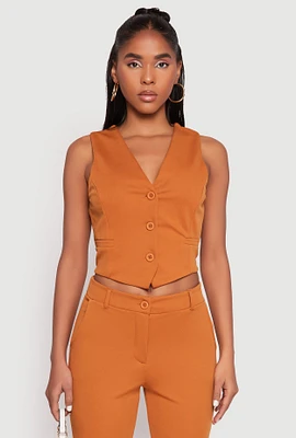 Womens Iris Button Front Cropped Blazer Vest, Brown, Size S