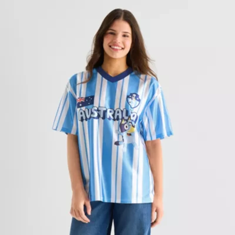 Womens Juniors V Neck Short Sleeve Bluey Jersey