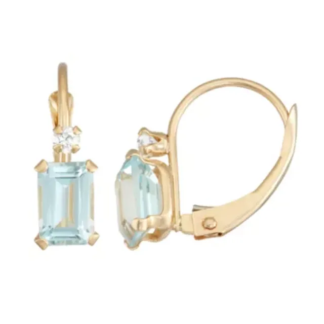 Womens Lab Created Blue Aquamarine 10K Gold Drop Earrings