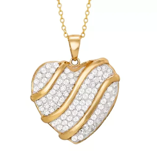 Womens Diamond Accent Natural White Diamond 10K Gold Over Silver Heart 18 Inch Pendant Necklace